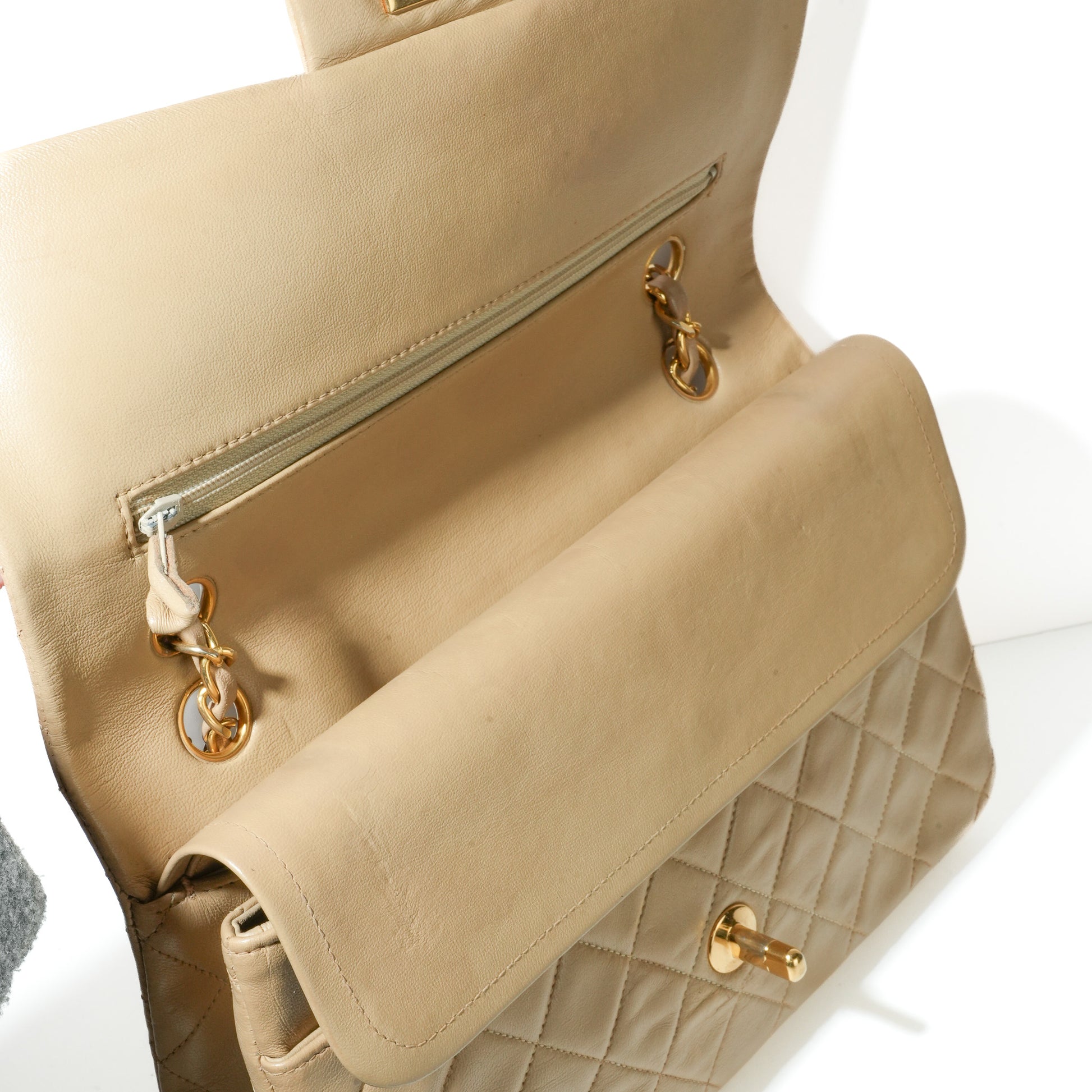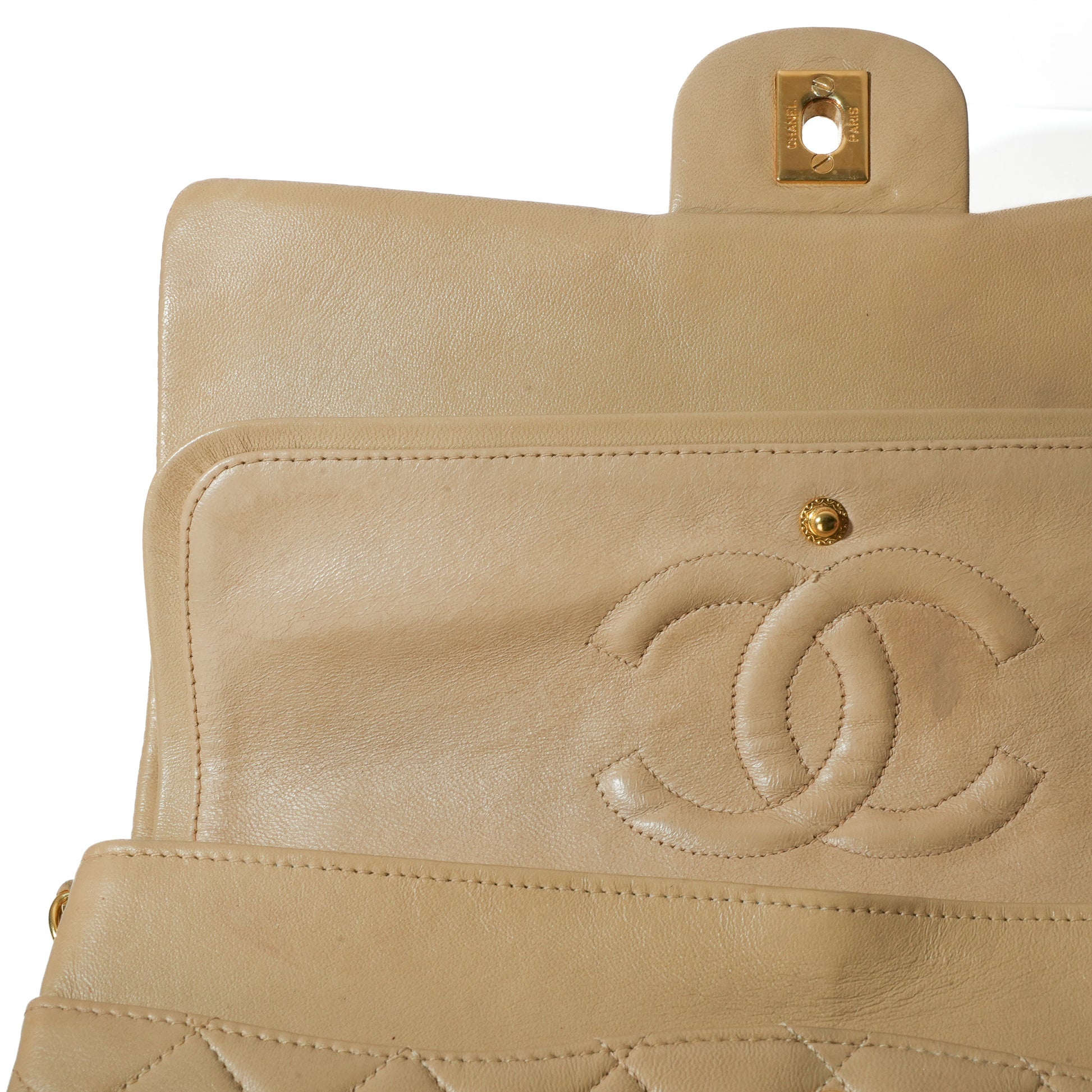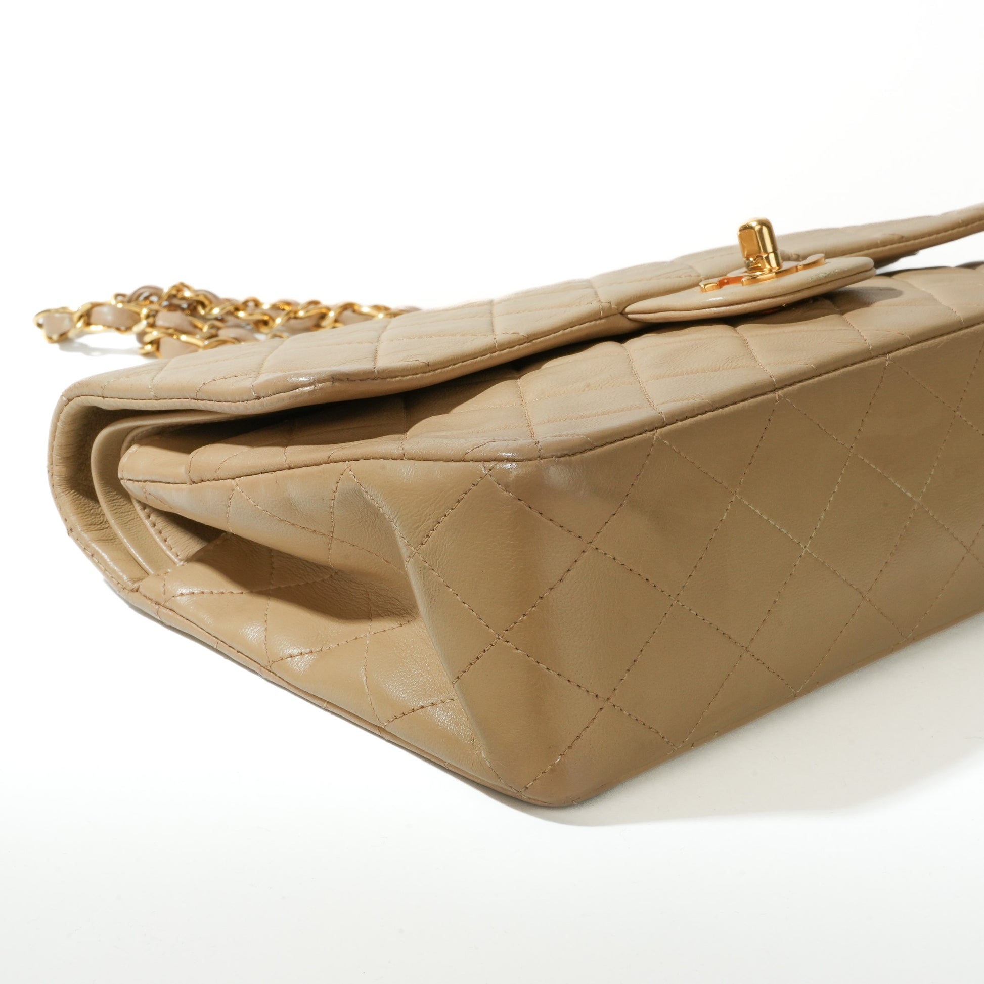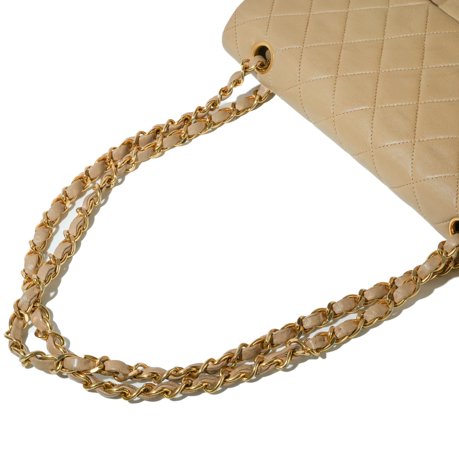 シャネル マトラッセ 25 ラムスキン ダブルフラップ ダブルチェーン バッグ ベージュ ゴールド金具