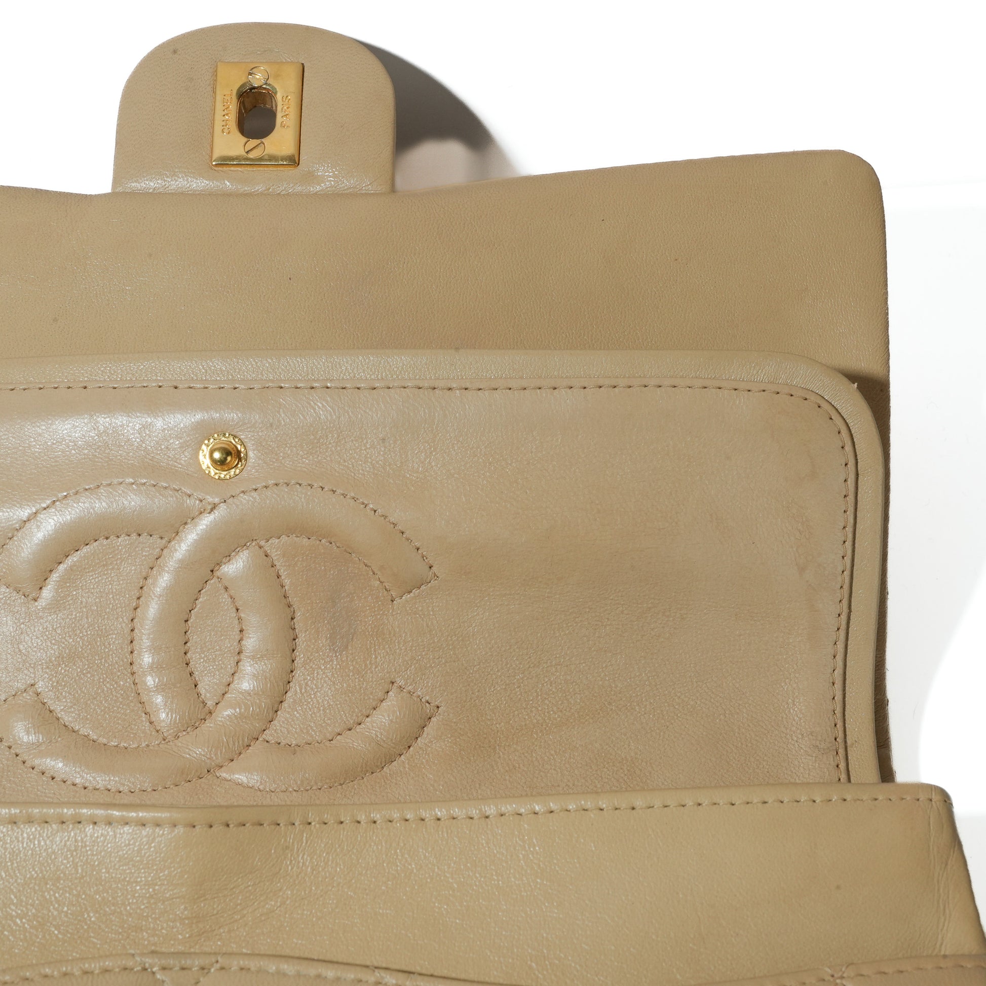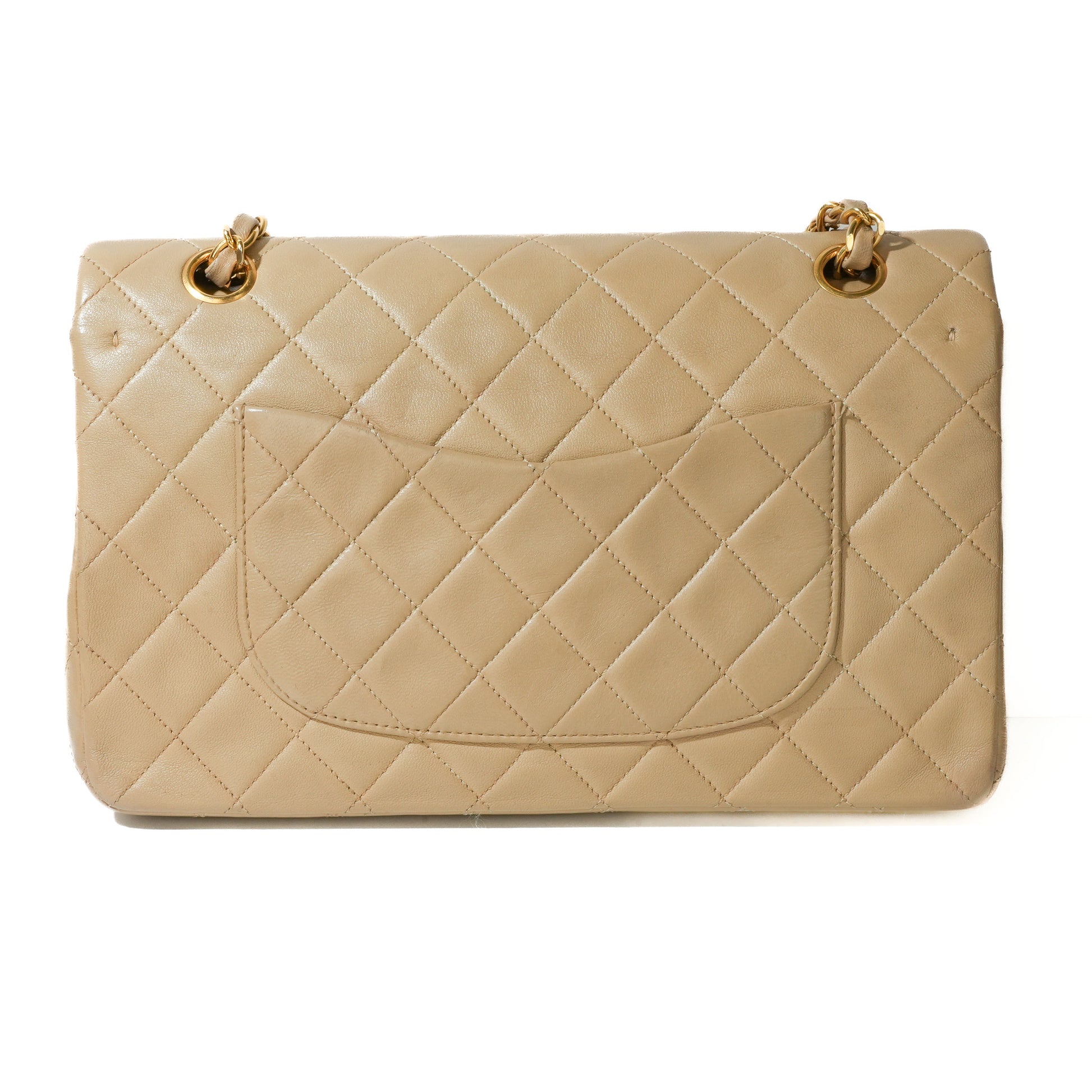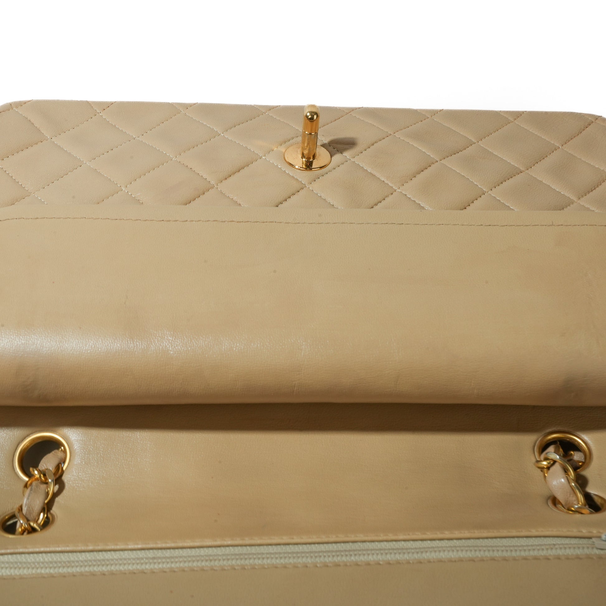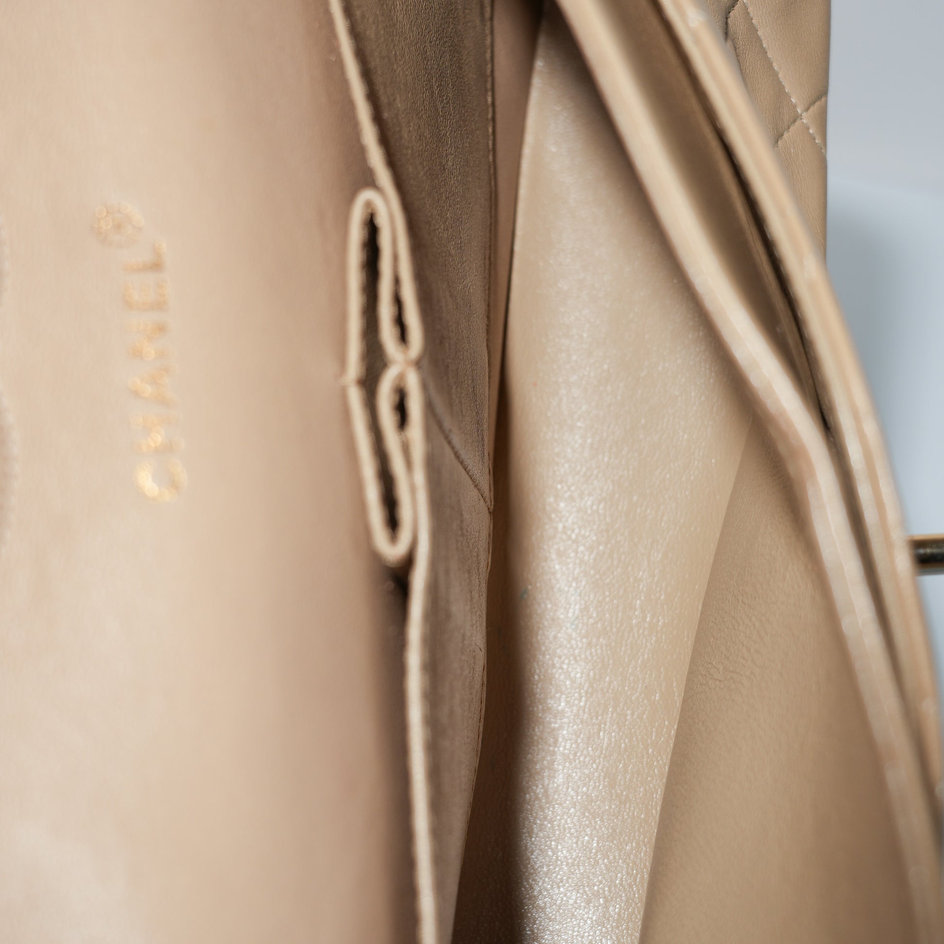 シャネル マトラッセ 25 ラムスキン ダブルフラップ ダブルチェーン バッグ ベージュ ゴールド金具