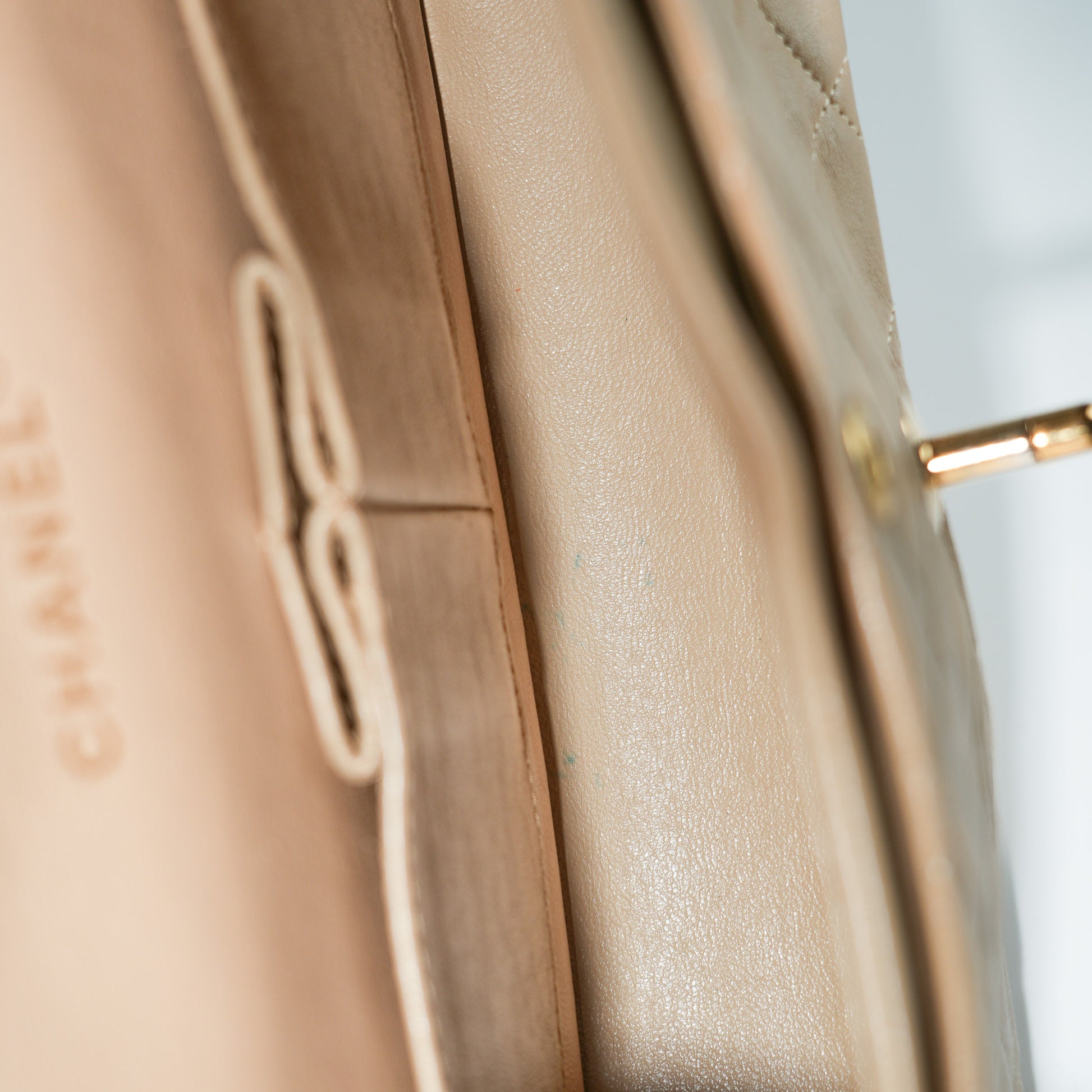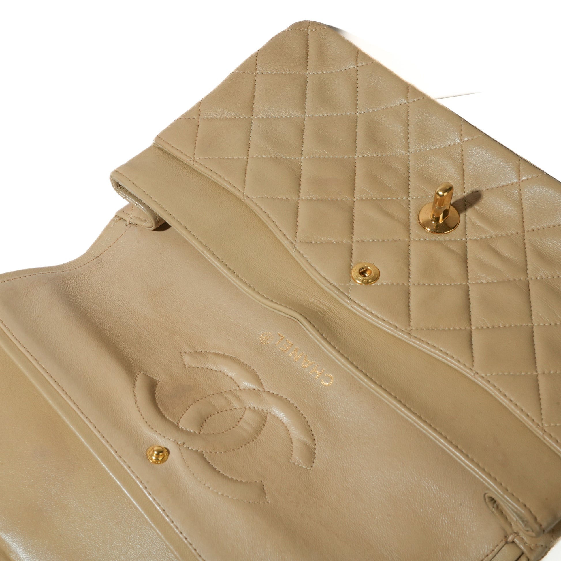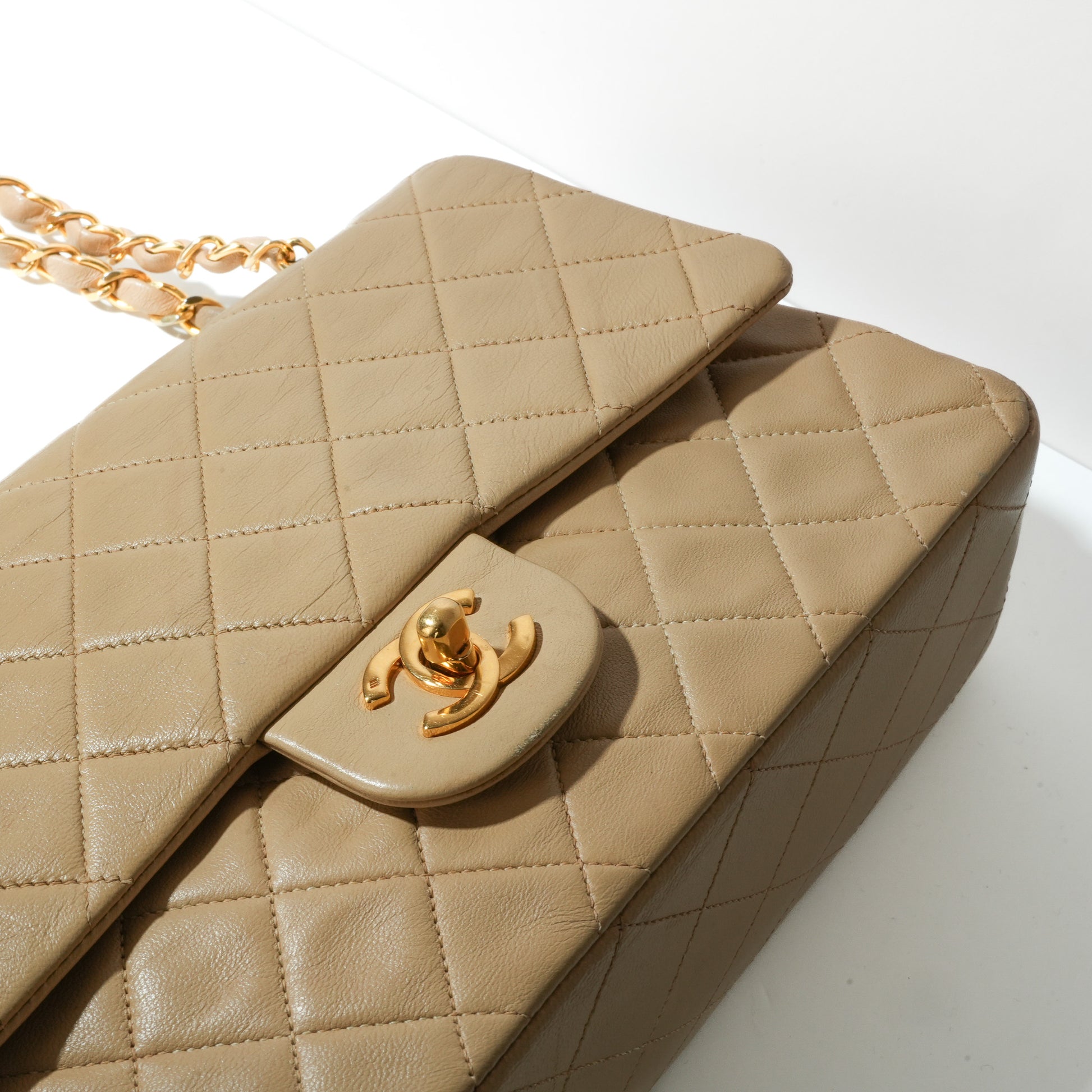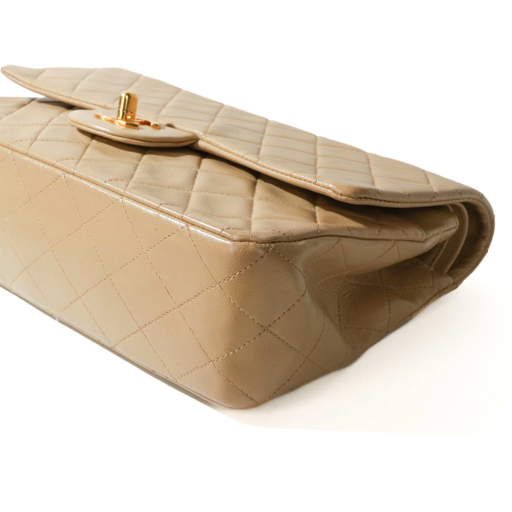 シャネル マトラッセ 25 ラムスキン ダブルフラップ ダブルチェーン バッグ ベージュ ゴールド金具